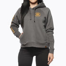 The women’s Stray hooded pullover is a super soft, cotton-poly blend fleece with raglan sleeves. Features custom graphics on front and back, this cozy piece is perfect for those chilly mornings out at the track.
